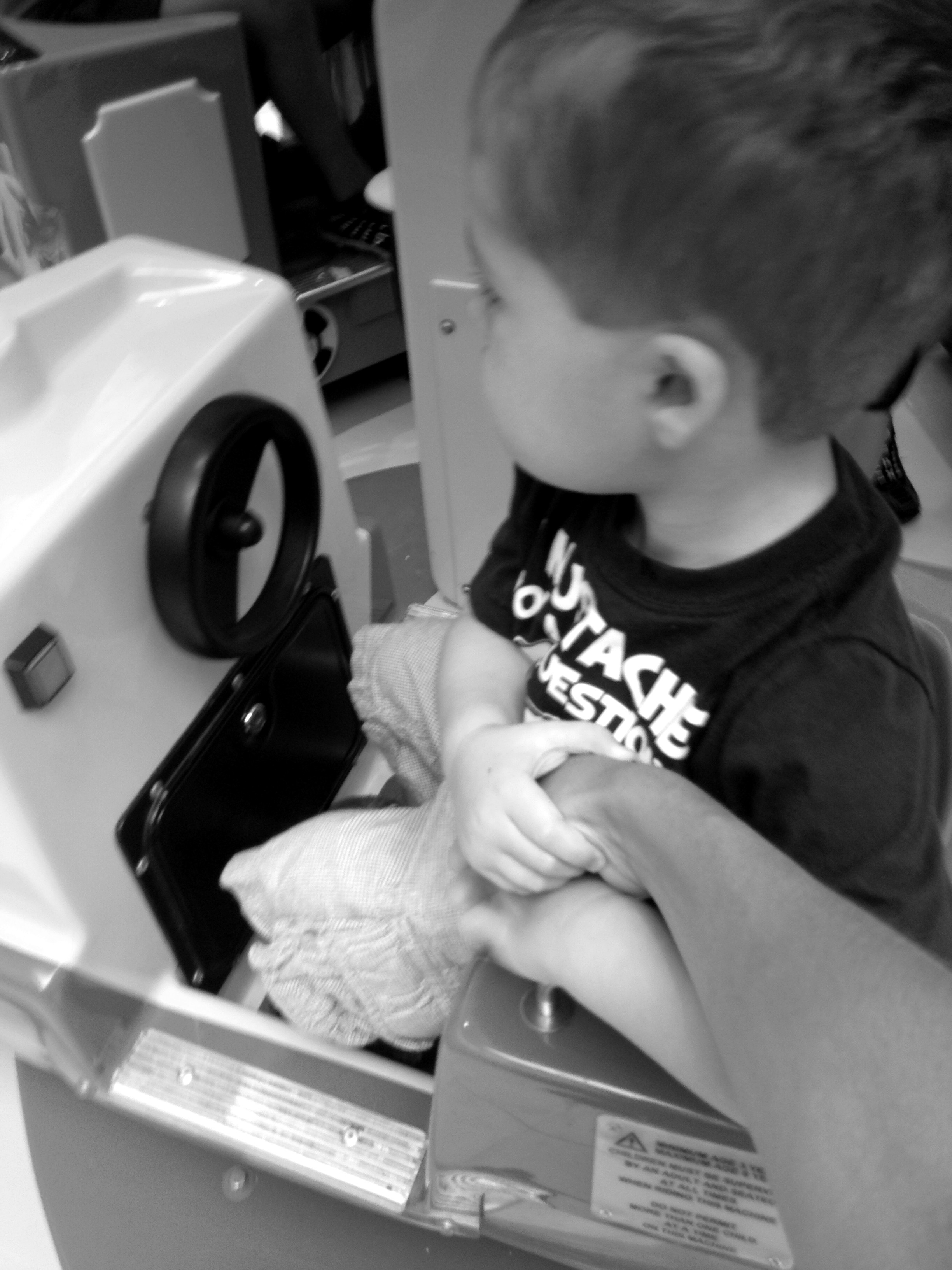 Apparently, I spoke too soon. I promised he could ride the carousel since he was so brave. The minute the ride started moving the tears and freaking out started until I let him hold my hand. Double bonus, I got some exercise walking around and around and around and around and around … the carousel while he held onto my hand for dear life.