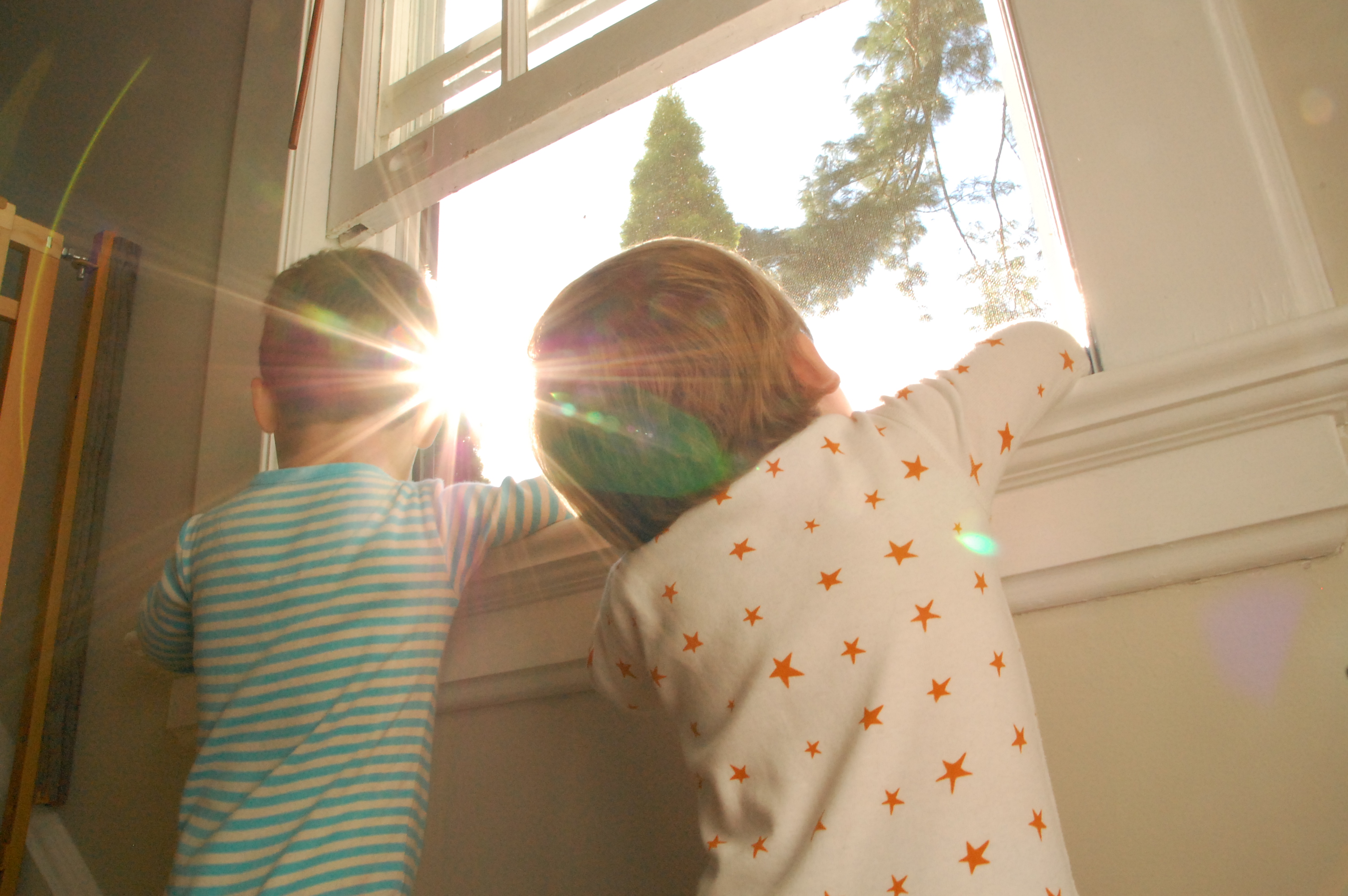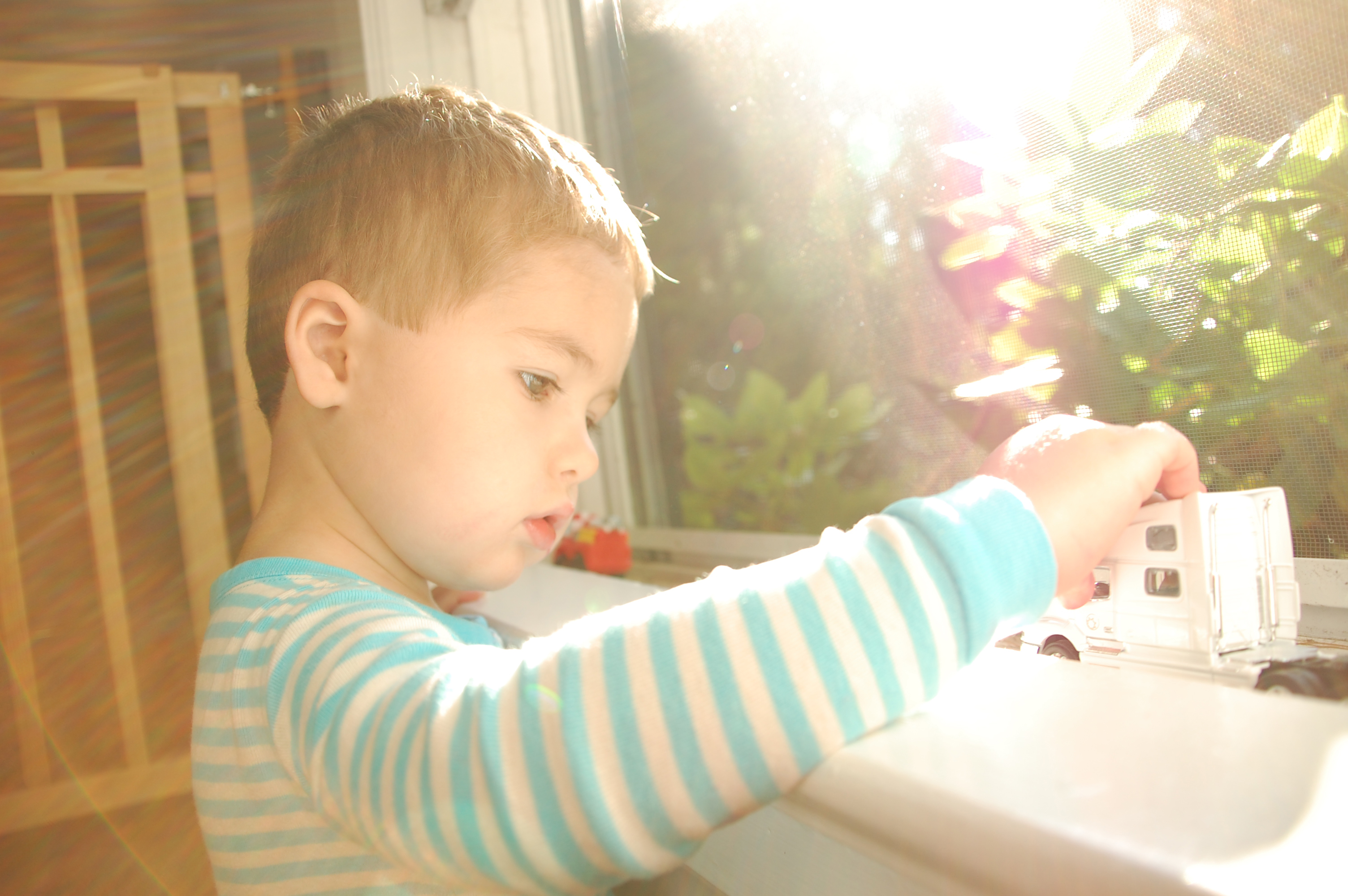 It’s cooler outside than in my house with the A/C on. It’s August. In New Jersey. What is going on?? So we opened the windows to air out the house a bit. J immediately found a new place to put his cars where his brother couldn’t really reach.