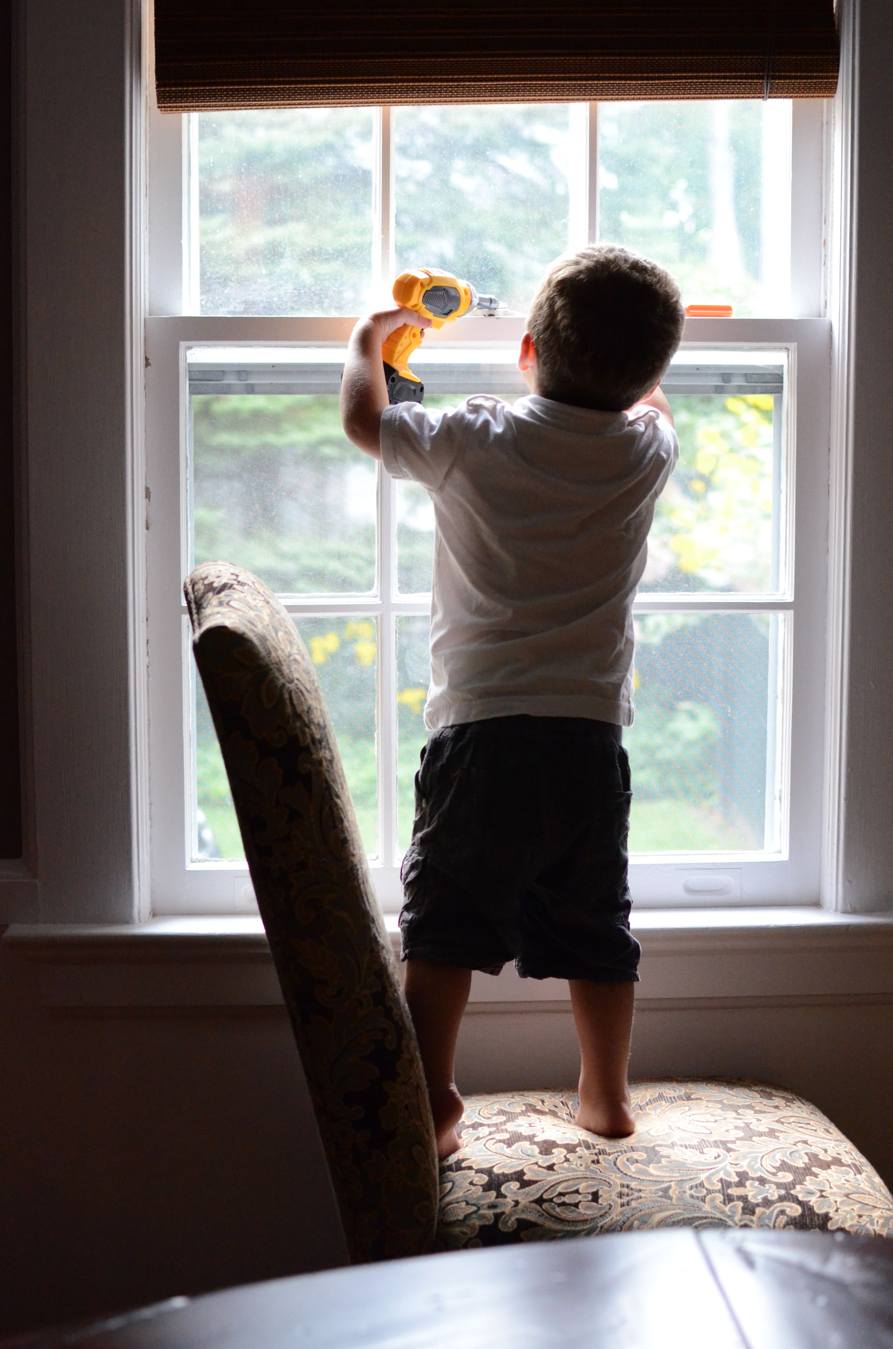 J decided he “needed” to fix our window this afternoon. Where does he come up with this stuff??