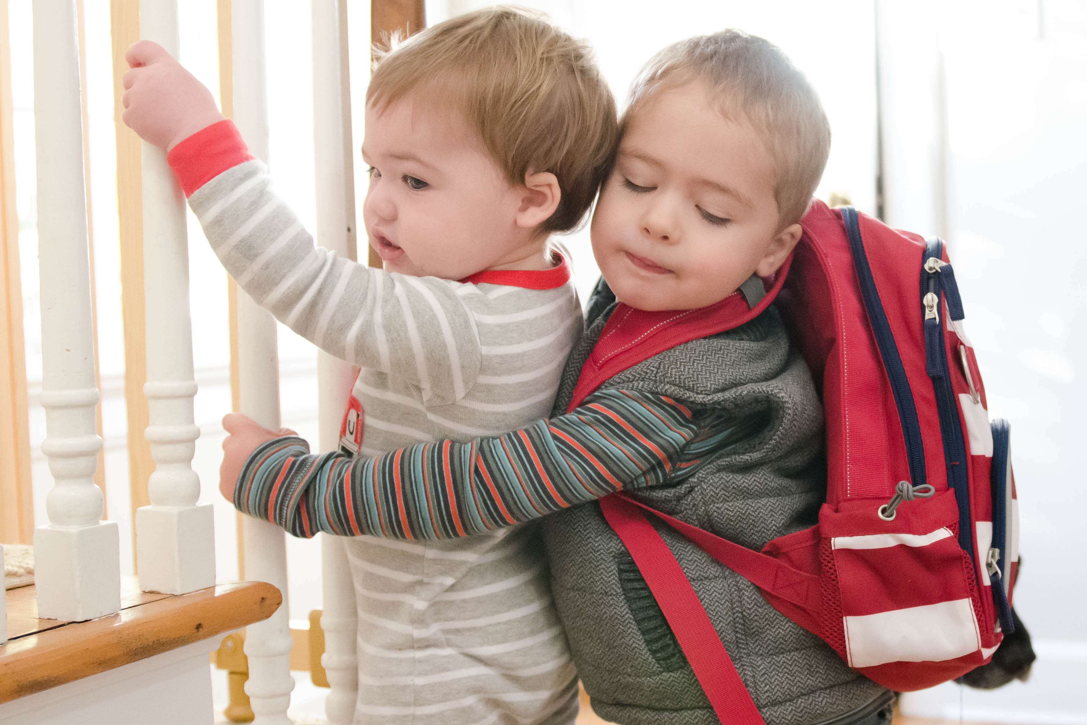 I like to think this was a hug in an attempt to say “I will miss you today little brother.”