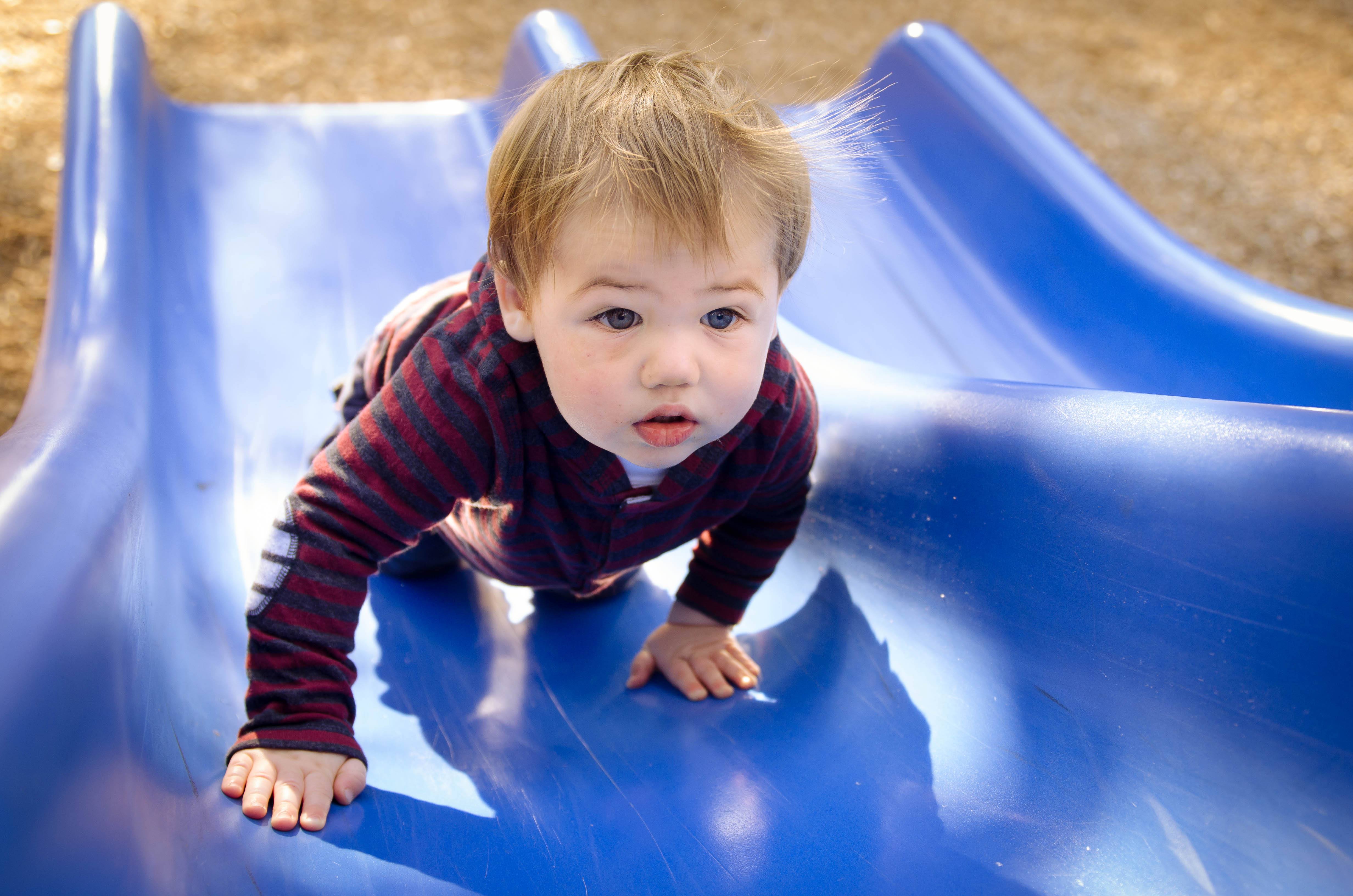 The static-cling hair just makes me laugh. This kid LOVES the slide. I mean loves it. Once at the bottom he flips over and tries to climb back up so he can go down again. The minute he gets to the top, he gets so excited that he loses control and just starts flailing his legs and arms as you try to get him set up to go down again. Maniac.