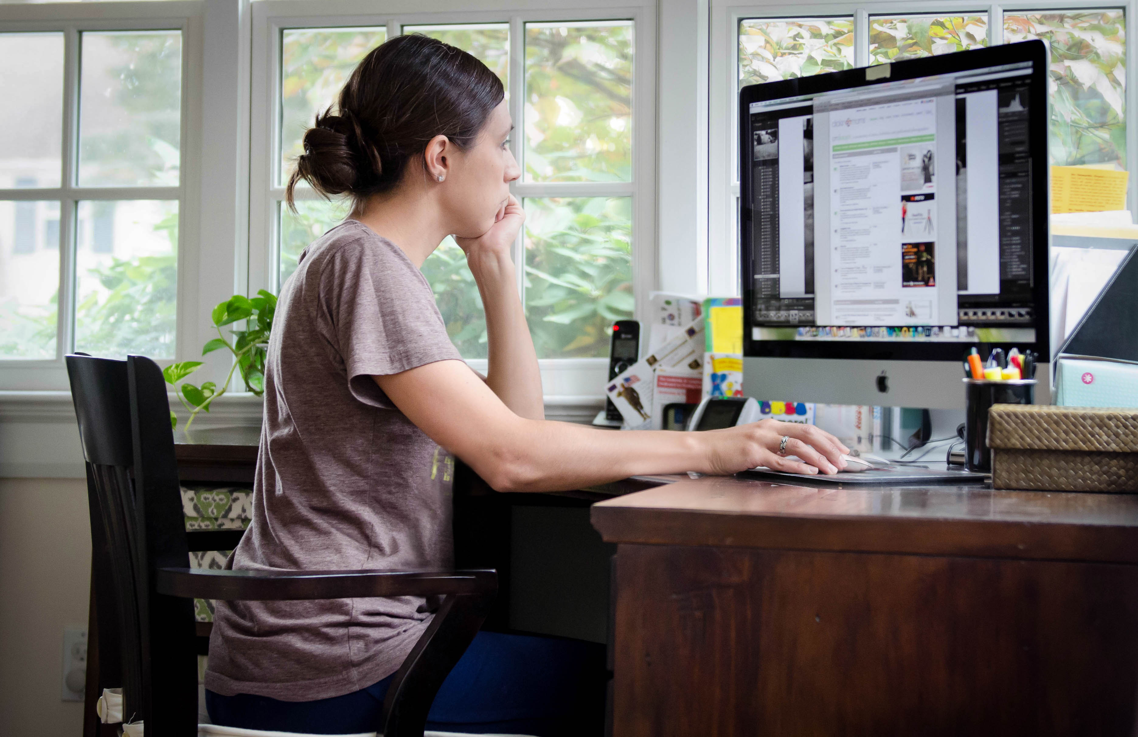 The assignment for this week in my 365 group was self-portrait. There were a few different attempts, but I liked this one best. Mostly because this is where I usually am when I should be sleeping, but also because I liked the soft light in the office that was filtering in through the trees. And finally, I picked this one because it was 3 pm, my hair was still wet and I was still in my PJs. This also demonstrates how life is right now – sometimes it’s just one of those days where everyone is miserable and nothing really gets done, including getting dressed. And drying my hair.