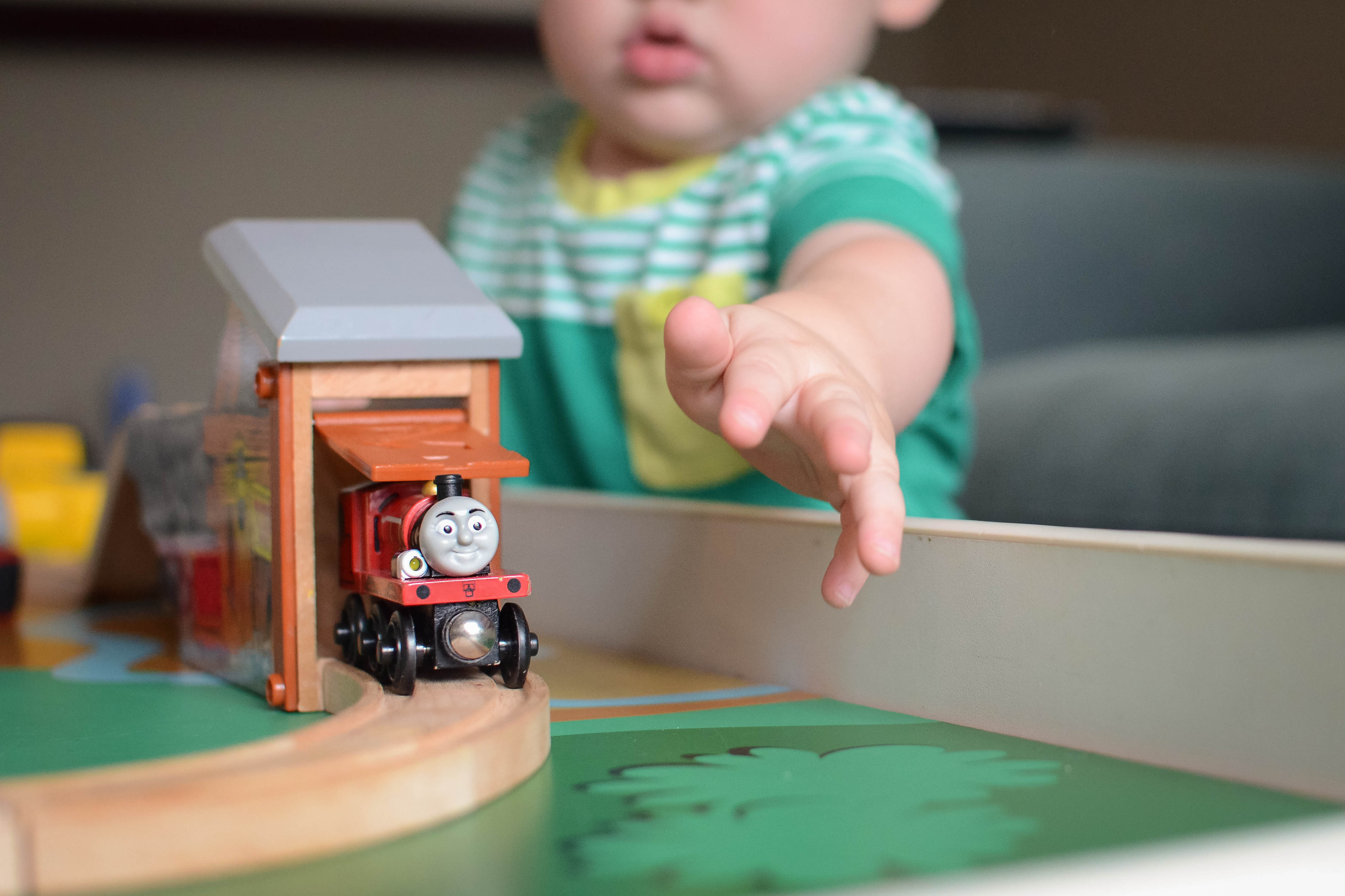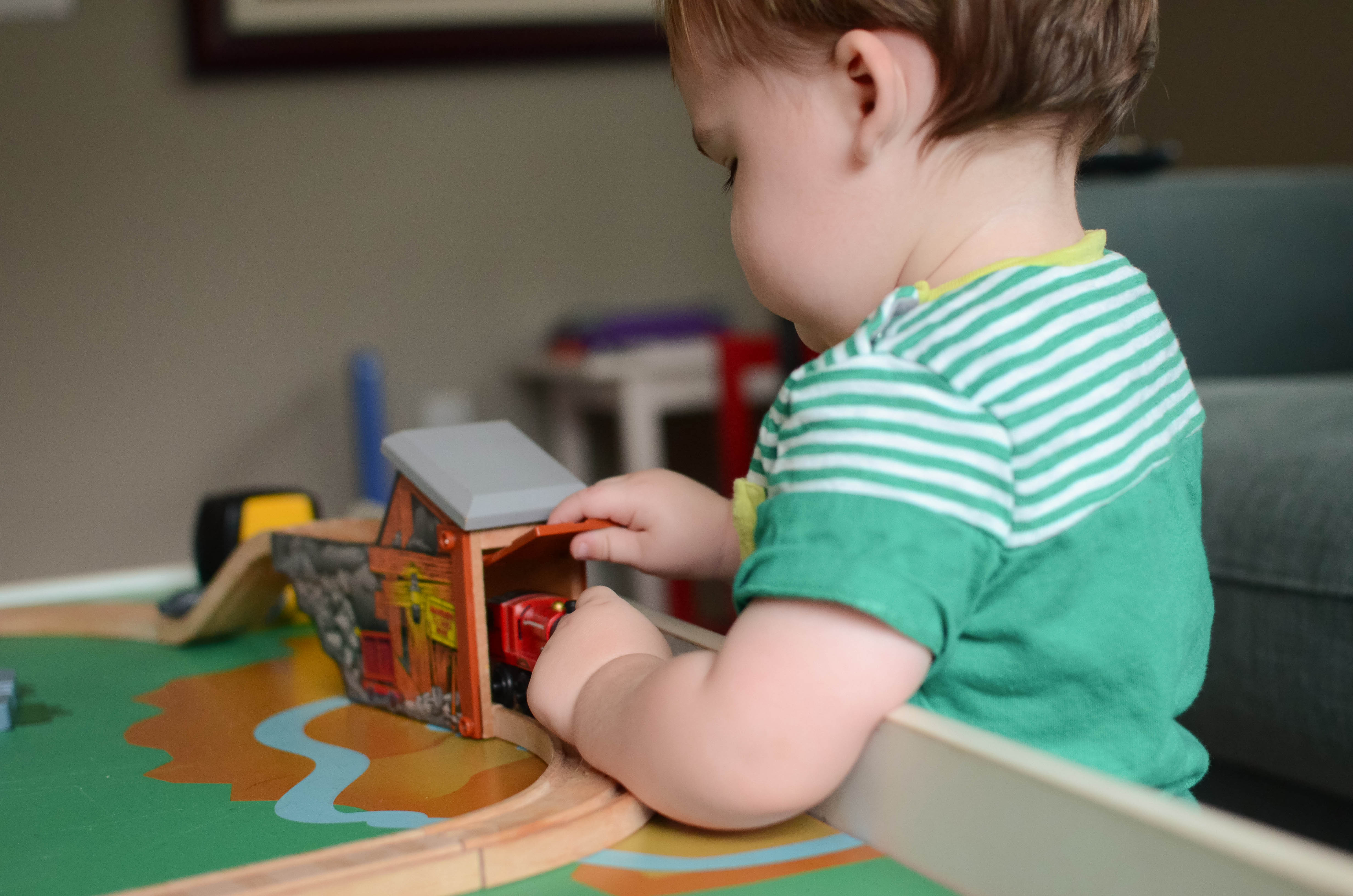 J and R are way more into cars than they are trains, but watching the trains go through this tunnel – and trying to fit cars through as well – is a favorite for R.