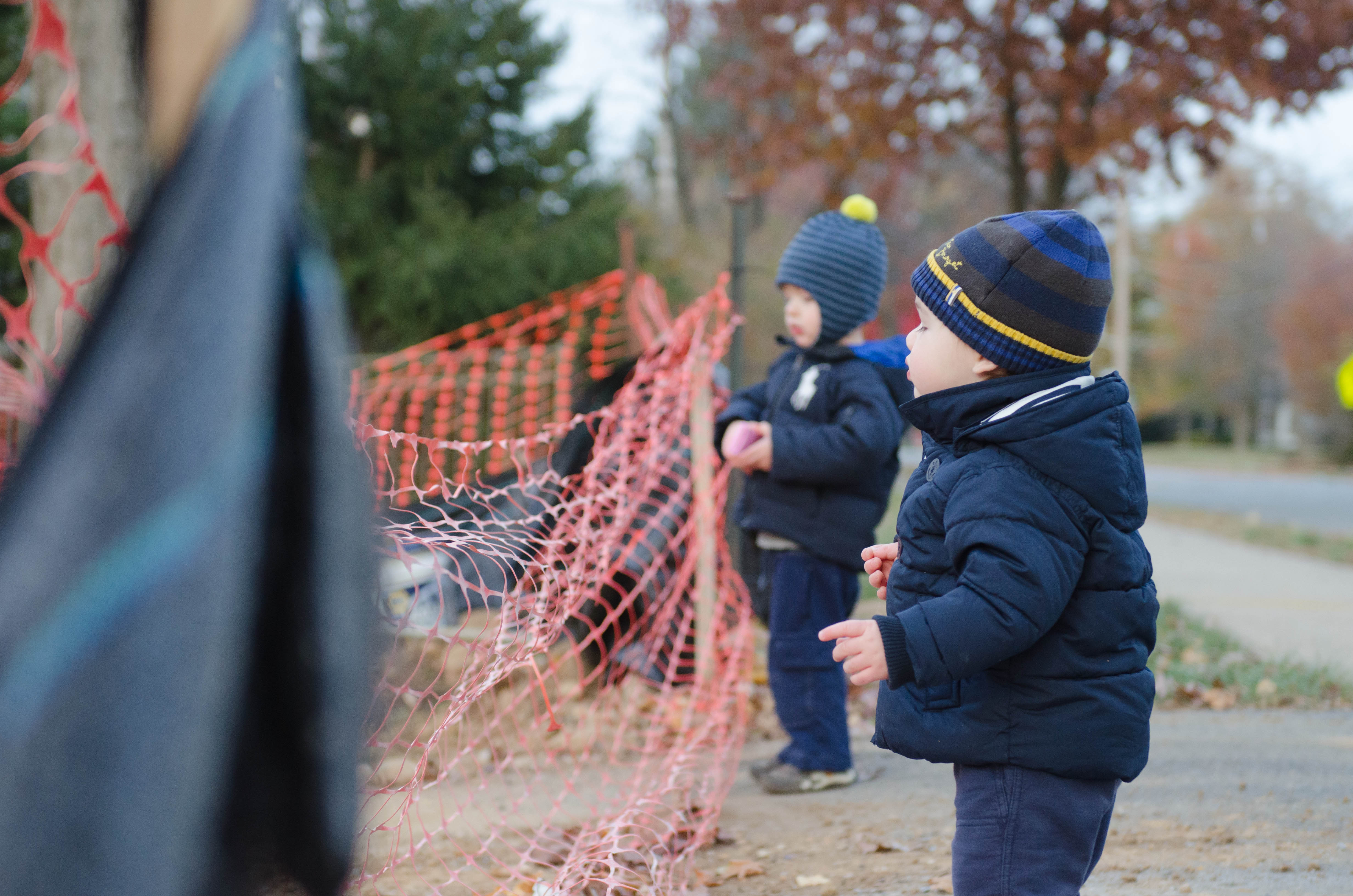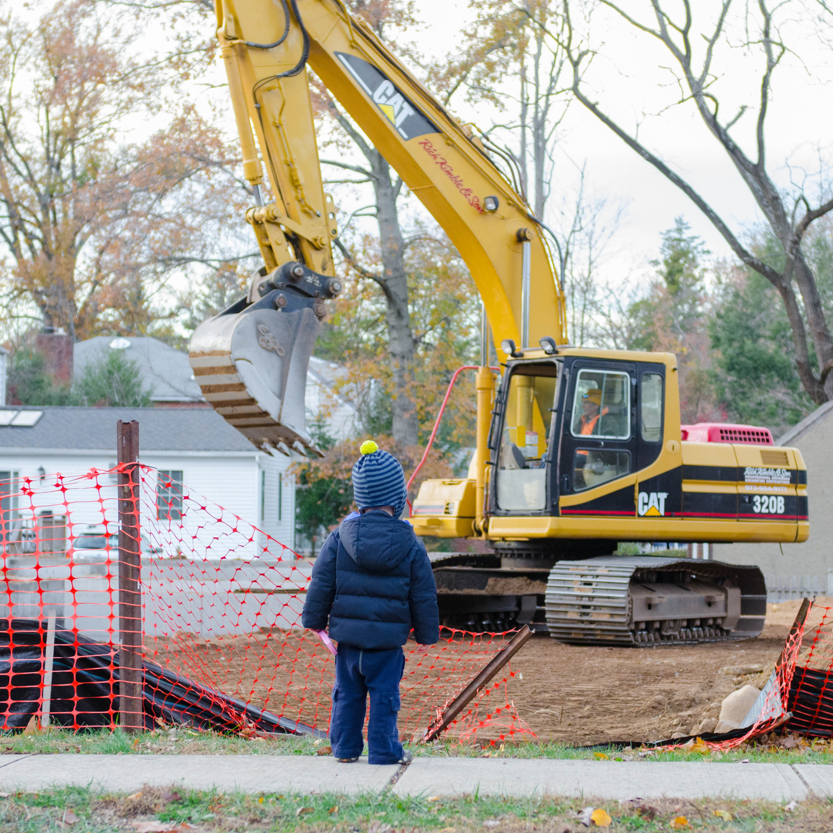Most of the time when we pass this site, the excavator is parked and not doing anything. The conversation usually goes like this: “why isn’t the excavator moving?” “It is sleeping.” “Without any covers?” “Yes, it doesn’t need blankets babe. It doesn’t get cold like you and I do.” “Oh. Ok Mama.” On this day we got out for our walk earlier than usual and the constructions workers were still on site AND they were using the excavator. Despite how loud it was, I could hear the shrieks of excitement from both kiddos (although I am not sure R really knew what he was so excited about!).