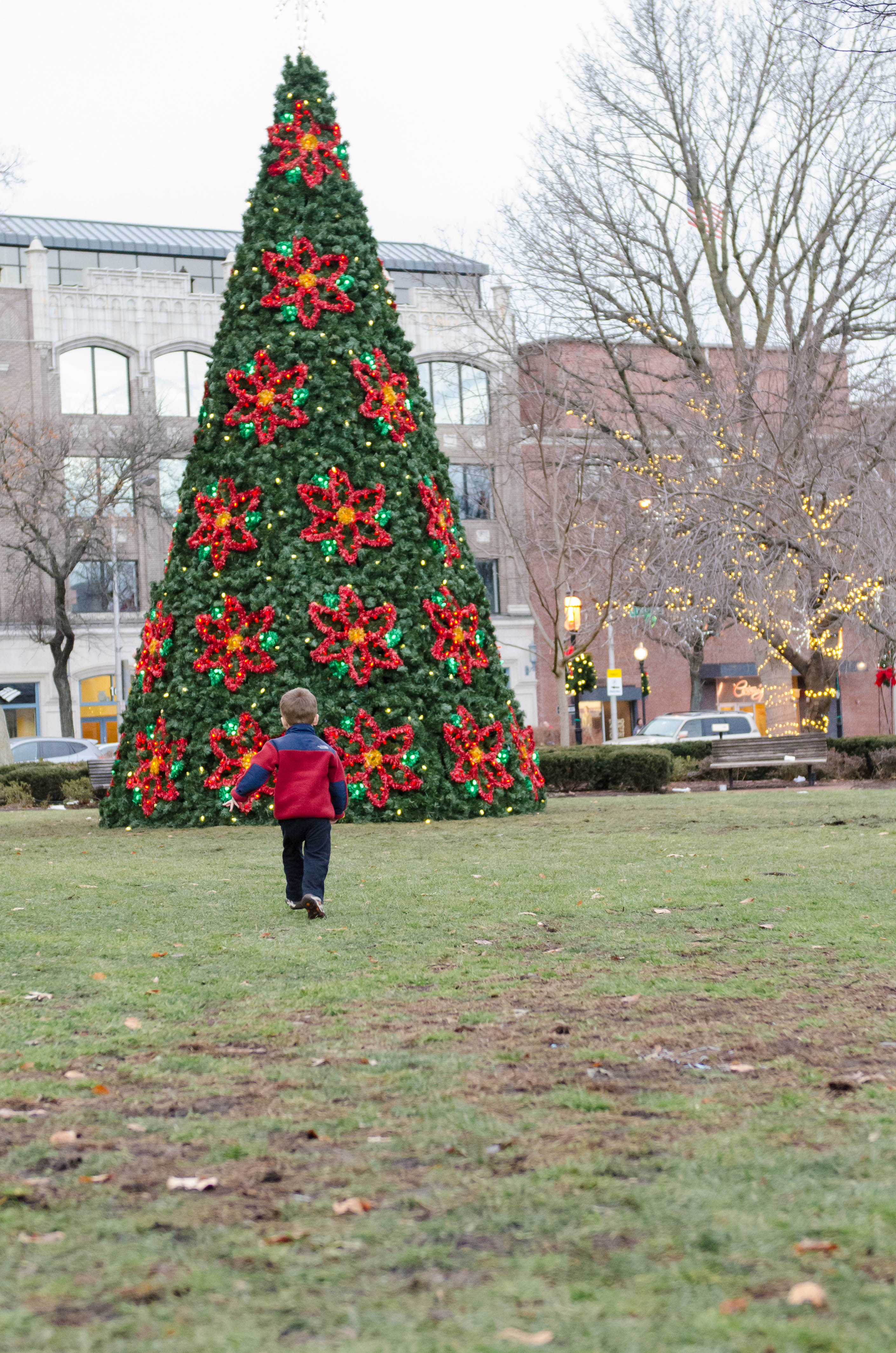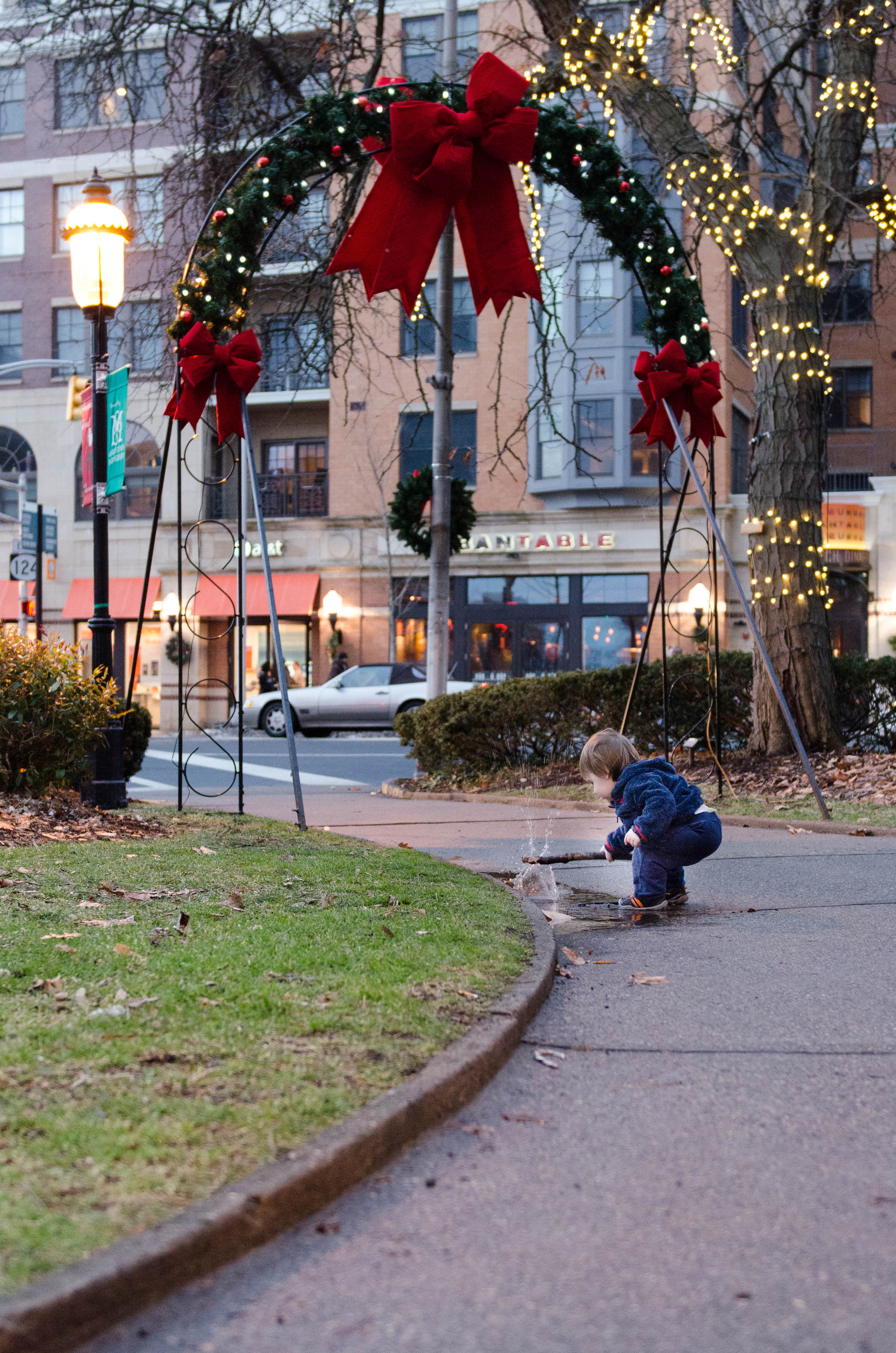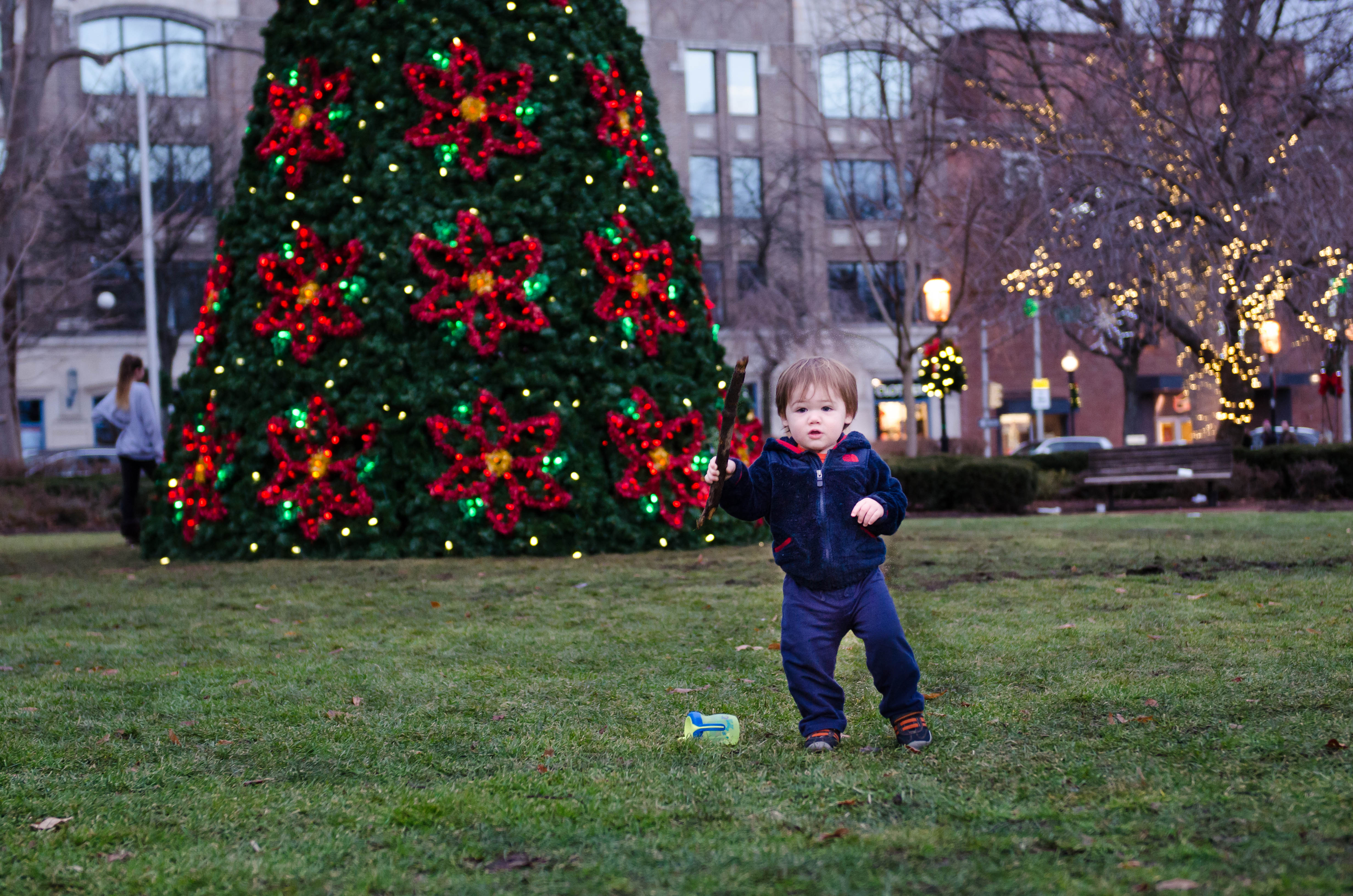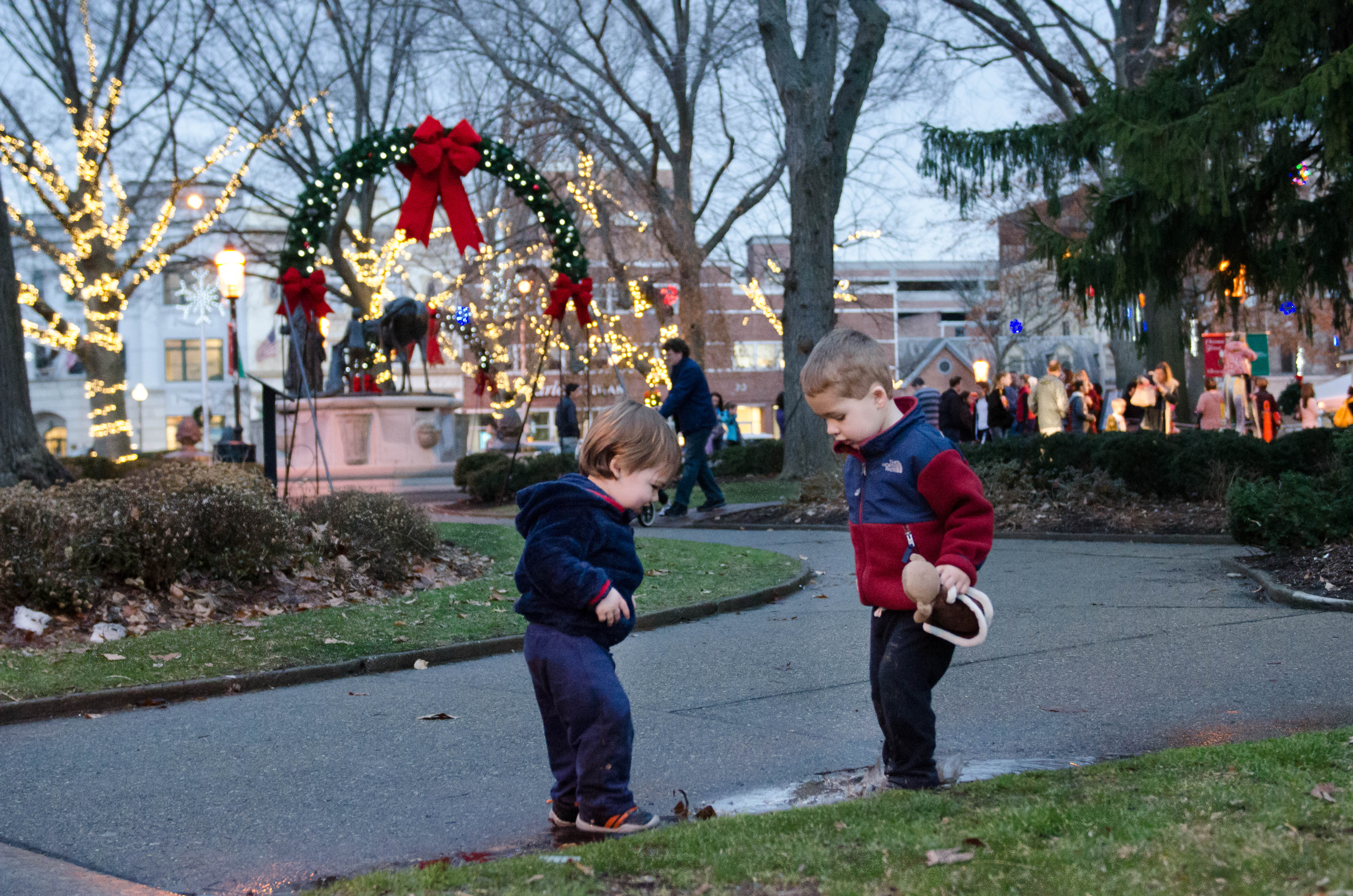 It was 70 degrees today! So we walked into town to check out the Christmas goings-on at The Green.