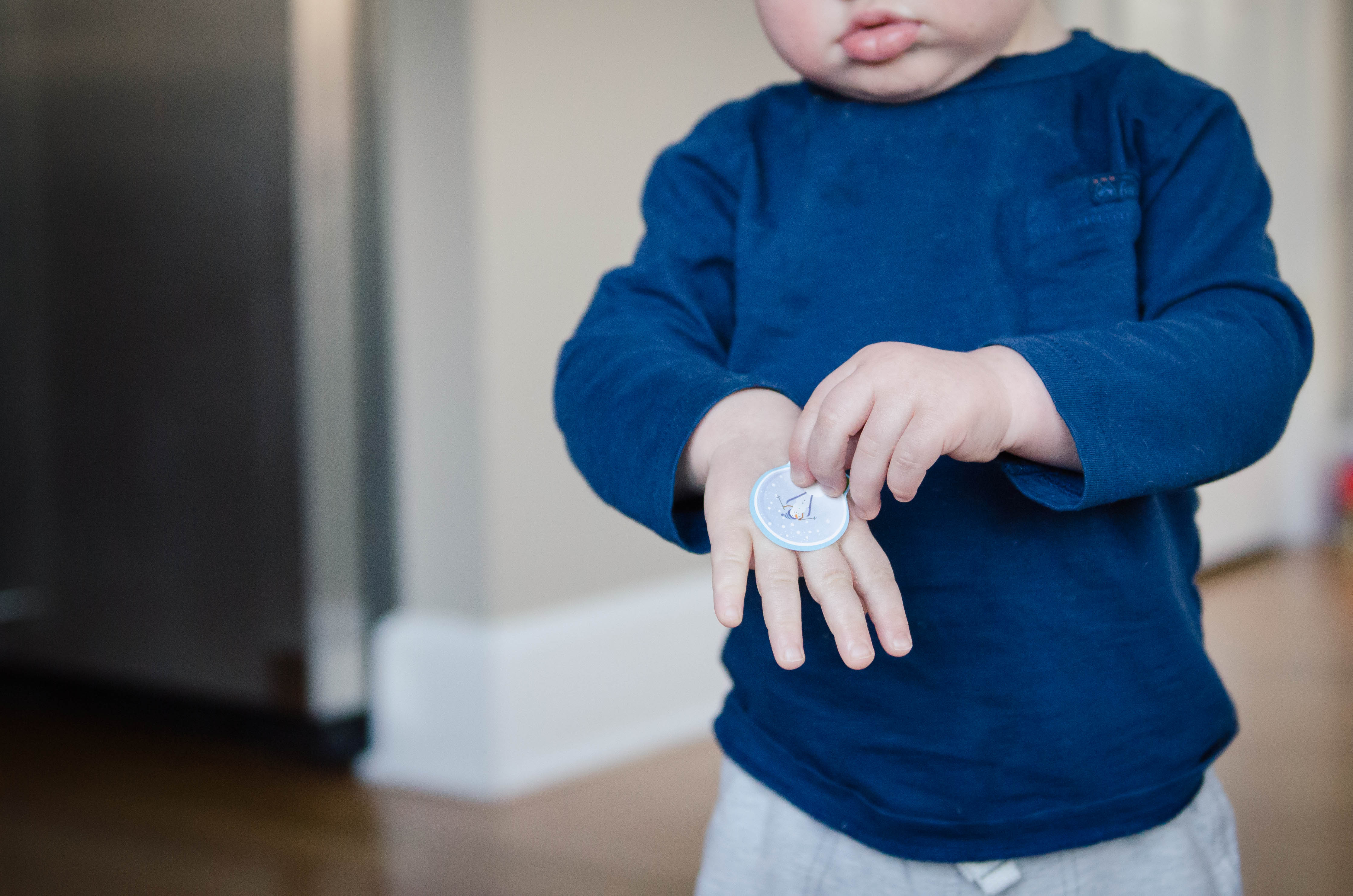 Most kids love stickers. R? He mostly just pulls them off his hand and eats them.