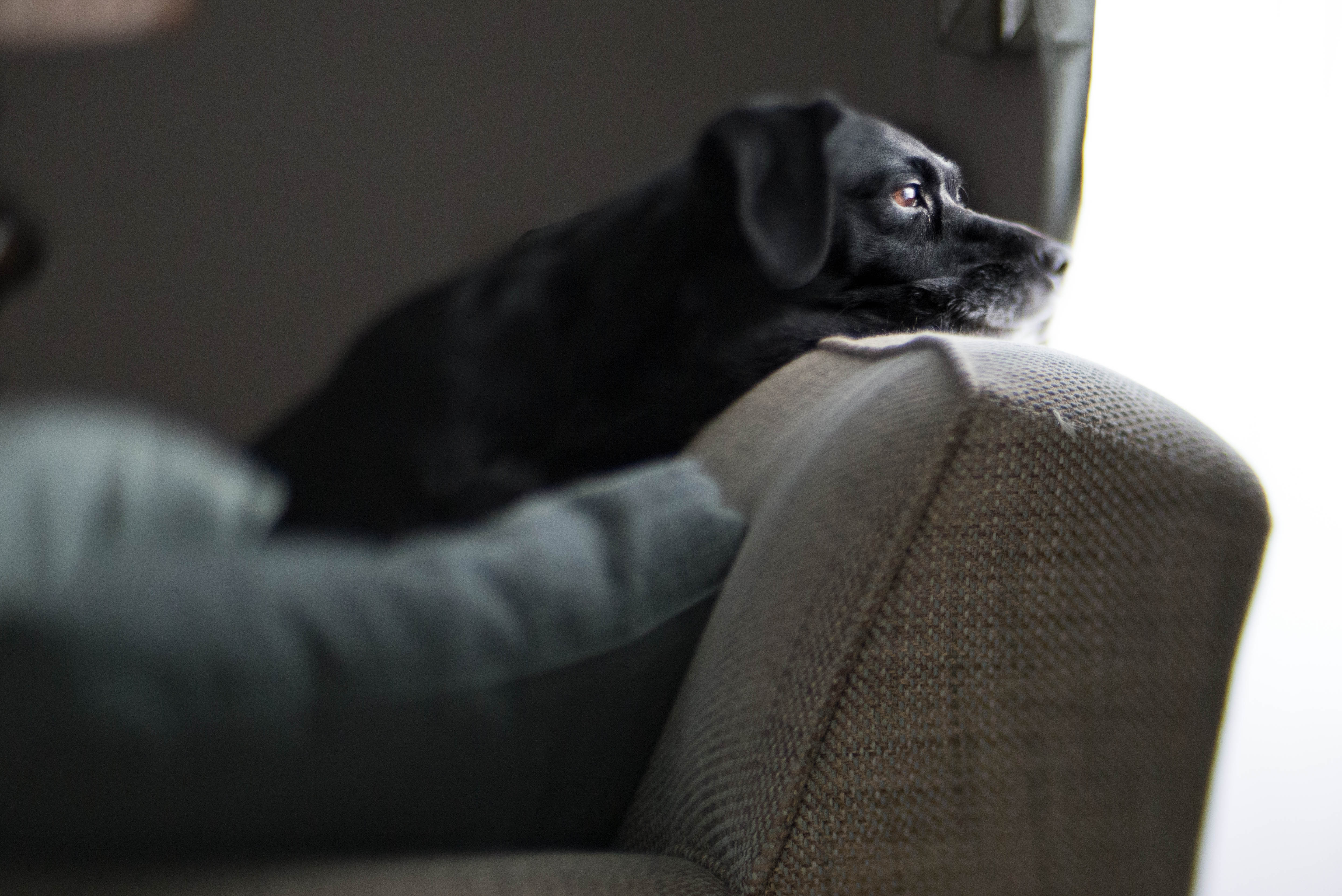 This dog haaaates the mailman. I mean he goes ballistic when the mailman comes to the door. Once he hears him park his truck on our street, he sits and stares out the window just biding his time until the mailman tries to deliver the mail to our house. Then all hell breaks loose. He runs from the couch to the door and then back to the couch barking like a crazy dog with his hackles up. By the time he is through, this couch has been pushed all the way up against the window and even more paint has been scratched off our front door. He’s a nutter!!