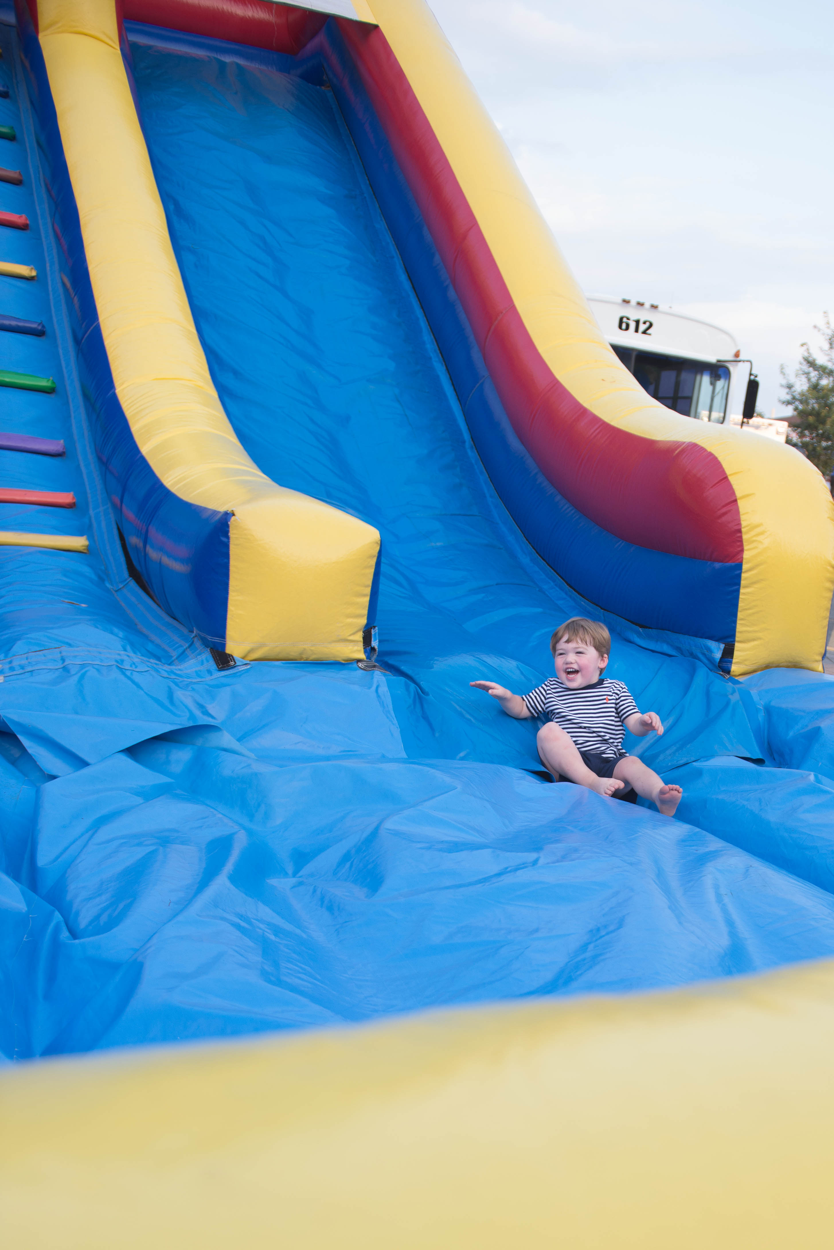 This slide was a HUGE hit with R. It was nearly impossible to stop him from trying to cut the (very very long) line and forget trying to explain why he only got one turn. We literally dragged him away kicking and screaming and received a lot of sympathetic stares from onlooking parents. He screamed the entire walk from the event to our car and then it took both of us to hold R down so that we could get him into his carseat – he was doing the ol’ stiff as a board maneuver so we couldn’t get his butt down to buckle him in. Poor kid. I think we may need to get him one for his birthday so he can go up and down to his heart’s content.