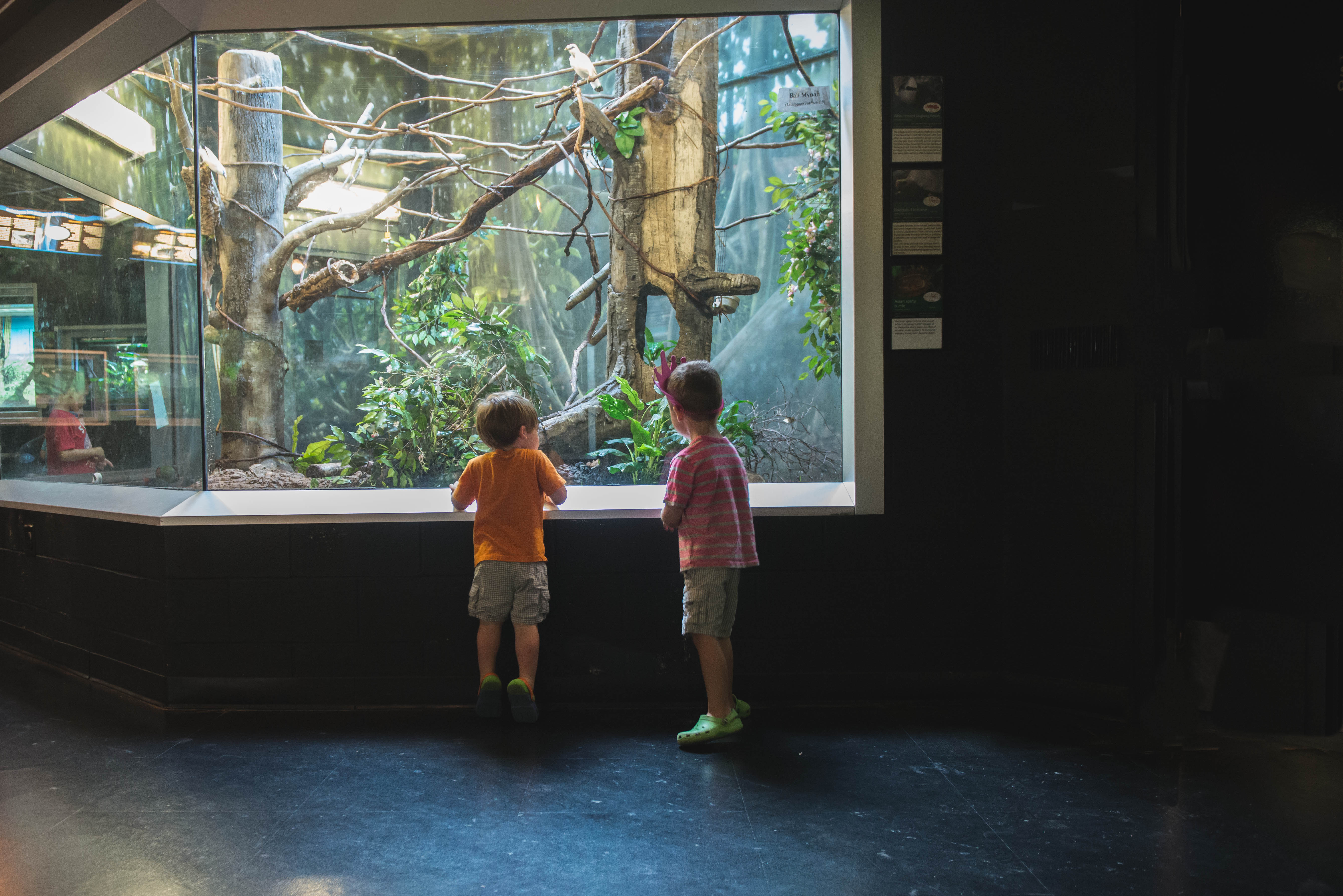 Despite the fact that we have been members of the zoo for two years now, this is the first time J and R have seen the reptile/amphibian house. We normally hit up the train ride and the touch aquarium. Then we may squeeze in one or two other things before it’s time for lunch and then home for naps. They thought it was pretty cool when the docents came out with a live hermit crab, turtle, frog and other reptiles/amphibians until the turtle peeked out of its shell and then they wanted out of there as fast as their little feet could carry them.