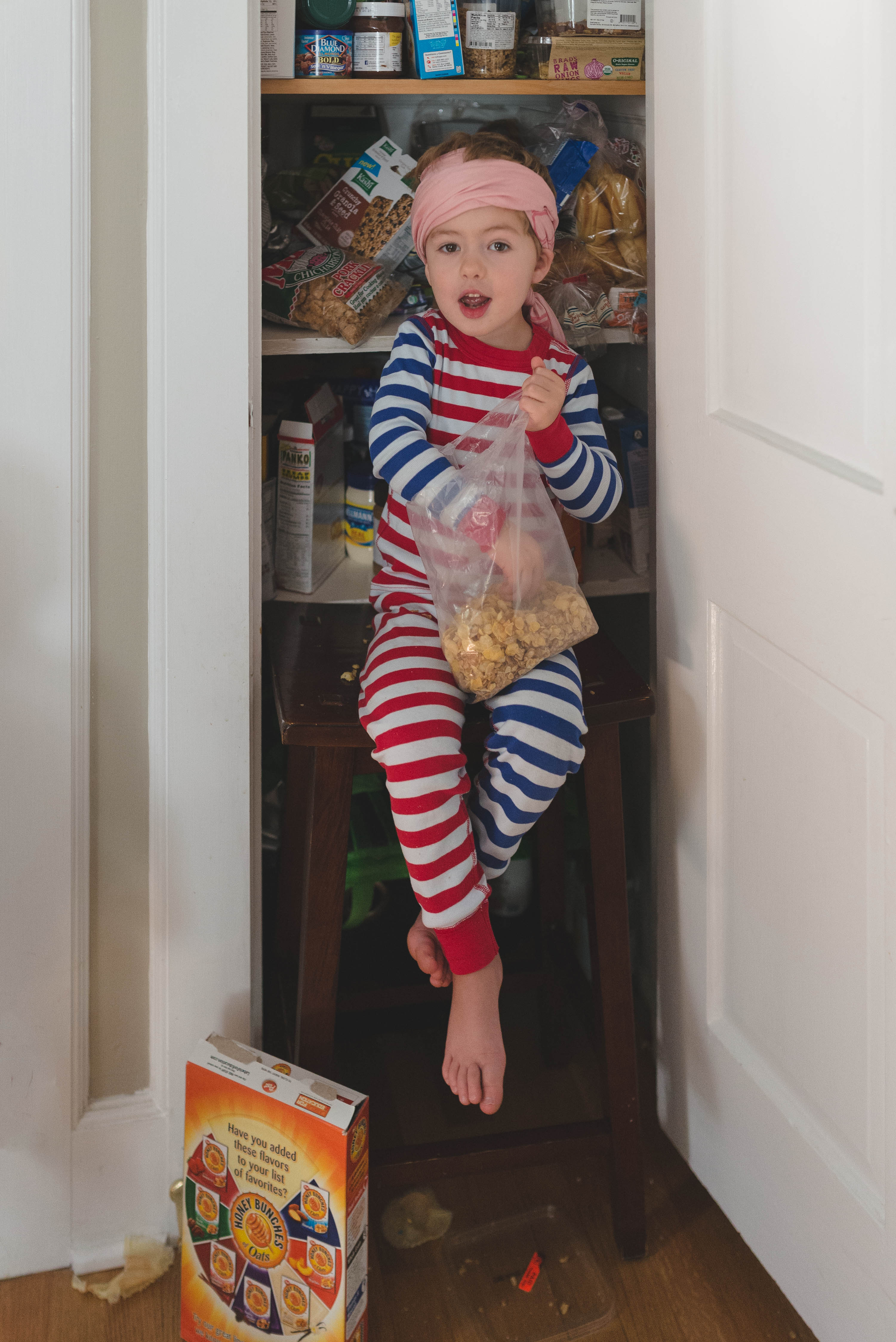 Tuesday is the day I normally go to the grocery store. So on this Sunday morning, much to J’s disappointment, there were no donuts left for him to sneak when I went upstairs to put some laundry away. When I came down and found him sneaking some cereal I asked “what are you doing Mister?” And he said, “Mom, I had to sneak the cereal. I tried to sneak the cookies but they are too hard to open. We need to buy more donuts.”