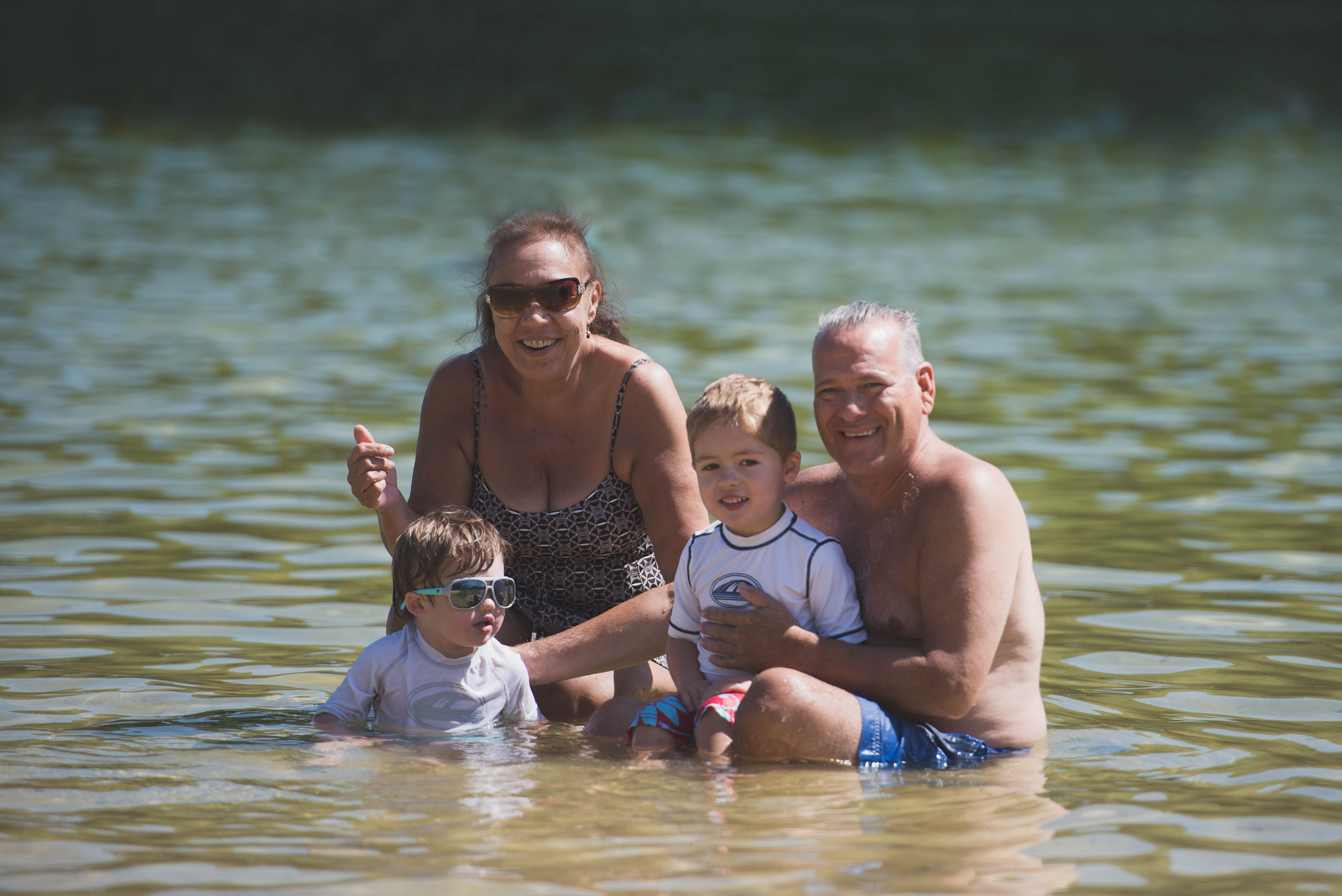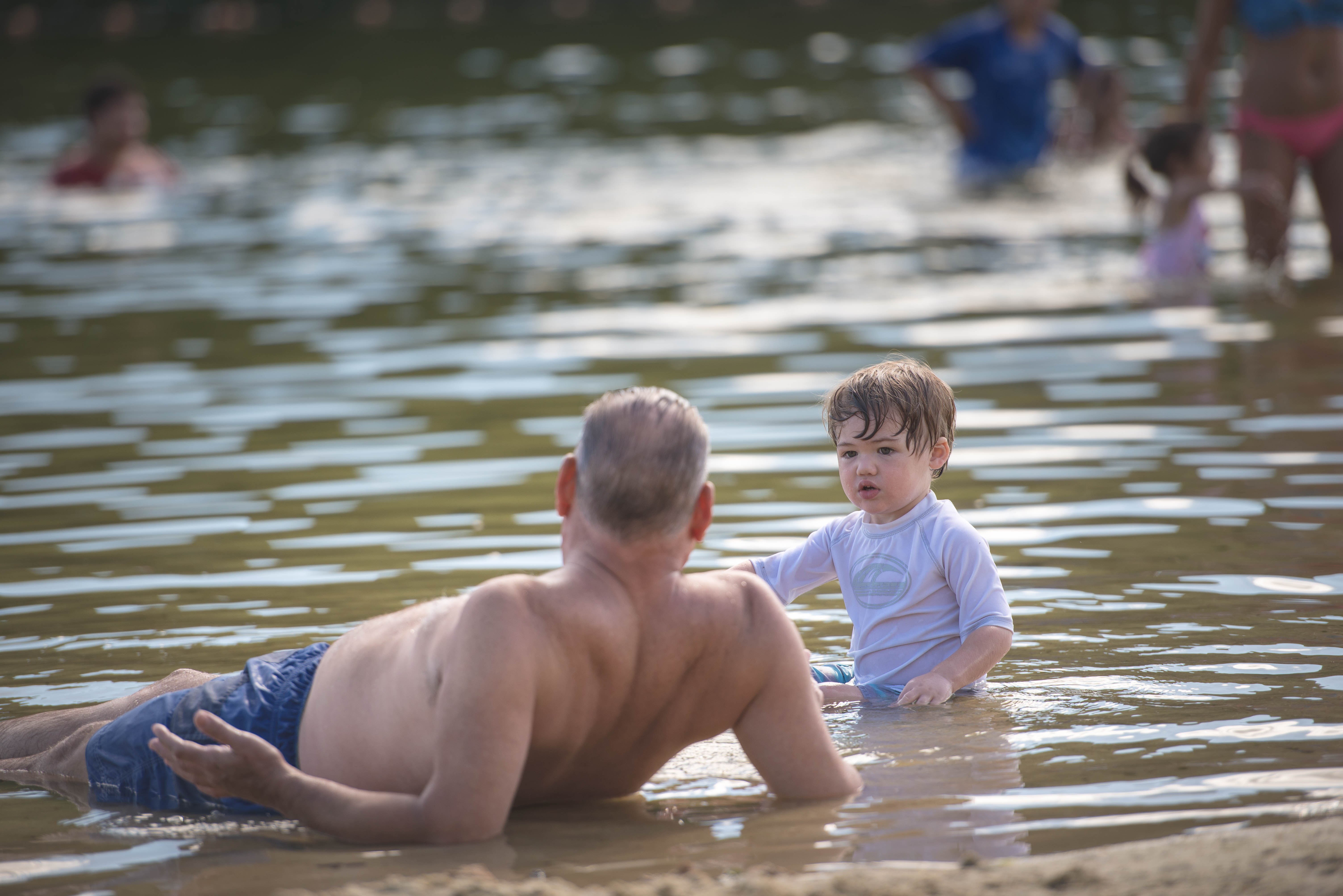 The boys were excited all week to see Oma and Opa at the lake. But on the day of our trip, J said to me, “Mama, I don’t think I want to go in the water.” I assumed he would change his mind once we got there, but as it turned out, he didn’t. I guess I am just surprised that at 3, he can make those decisions ahead of time. R, however, was a little water bug and we could not get him out of the water the entire 4 and half hours we were there (except to eat). He just kept begging Opa to get back in the water with him. I tried to keep a low profile so that I wouldn’t become the next target!