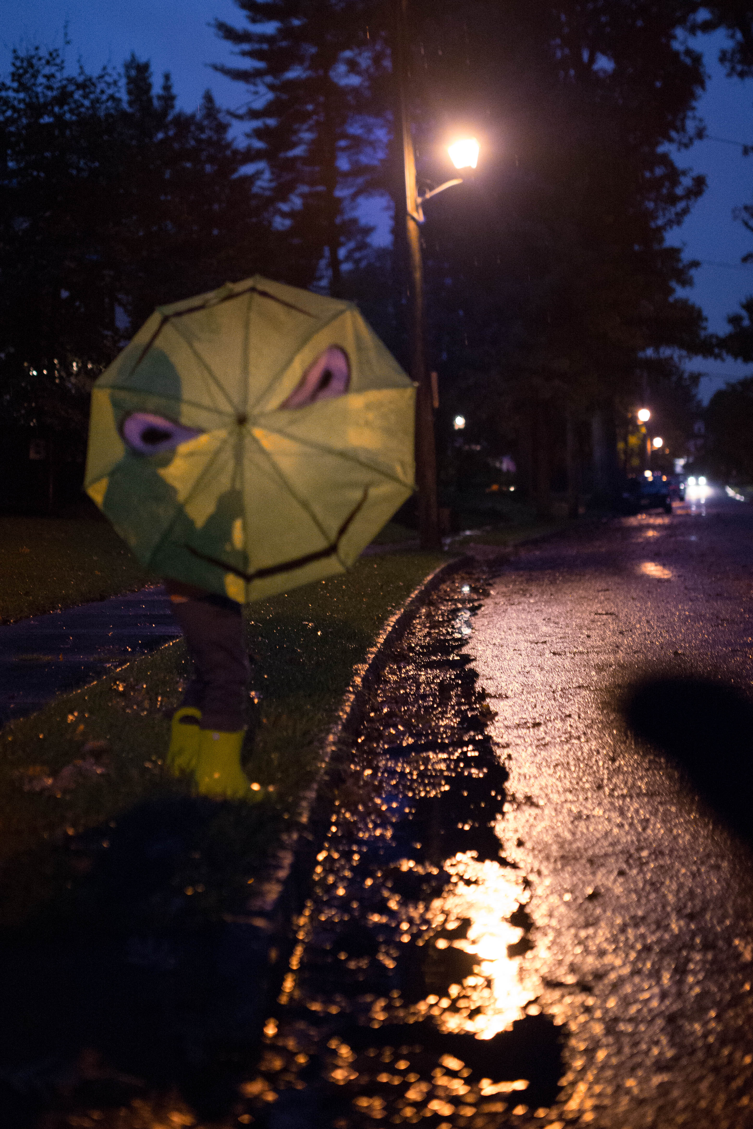 Being cooped up all day on a rainy November day is no fun! Luckily the rain was misty towards the end of the day so we could take a little night walk.