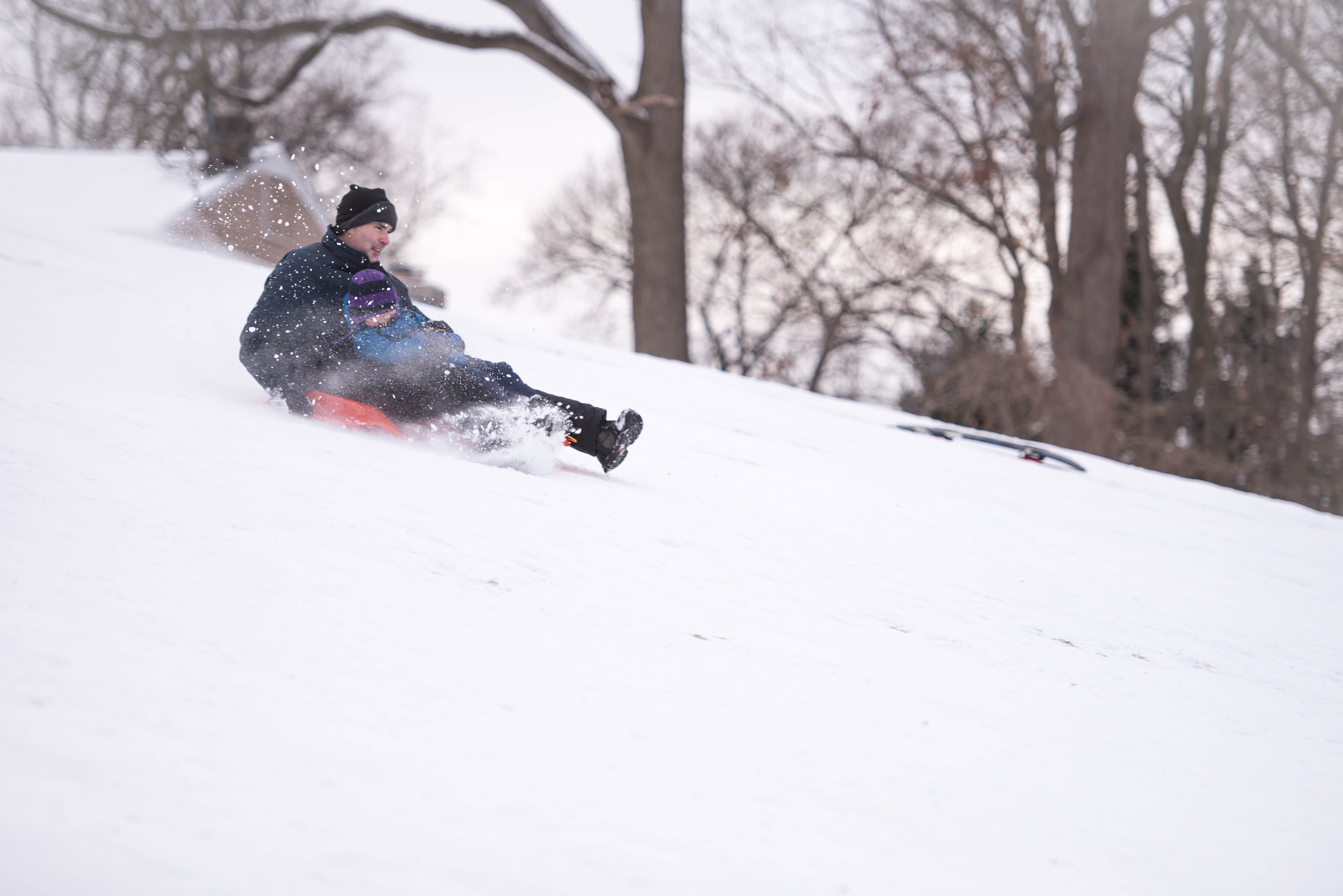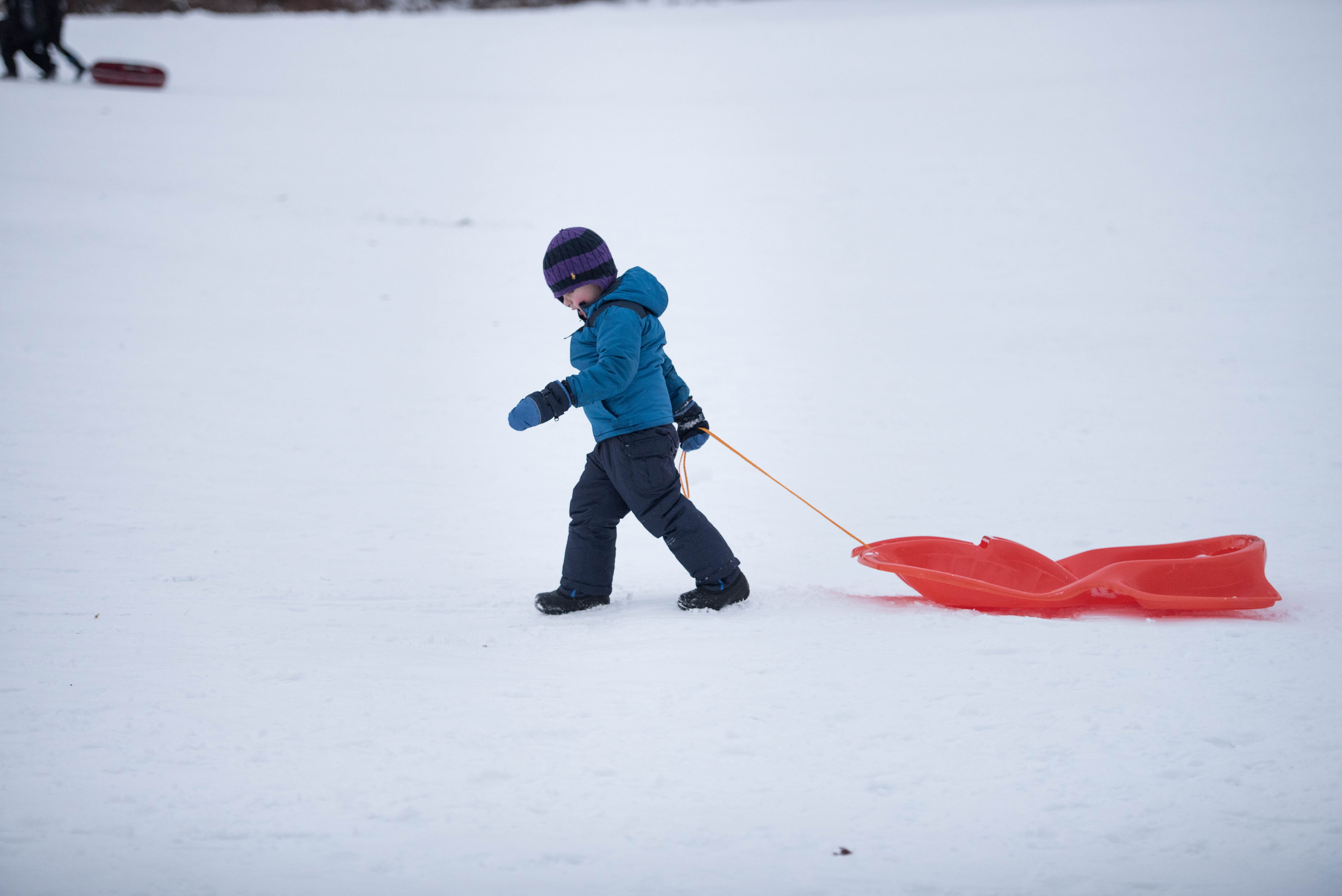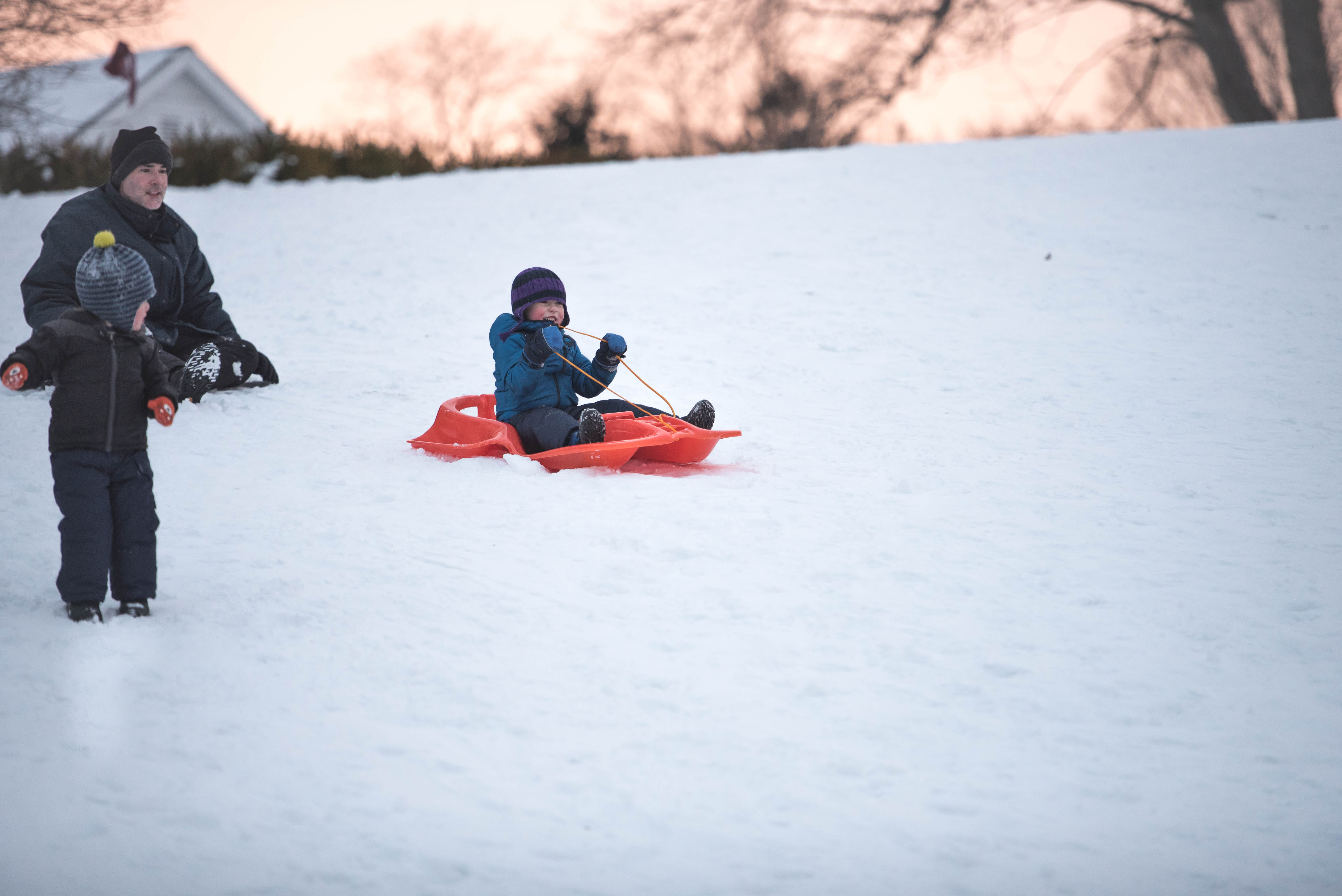 By the end of the afternoon, J was going down a smaller hill all by himself! Little dare devil.