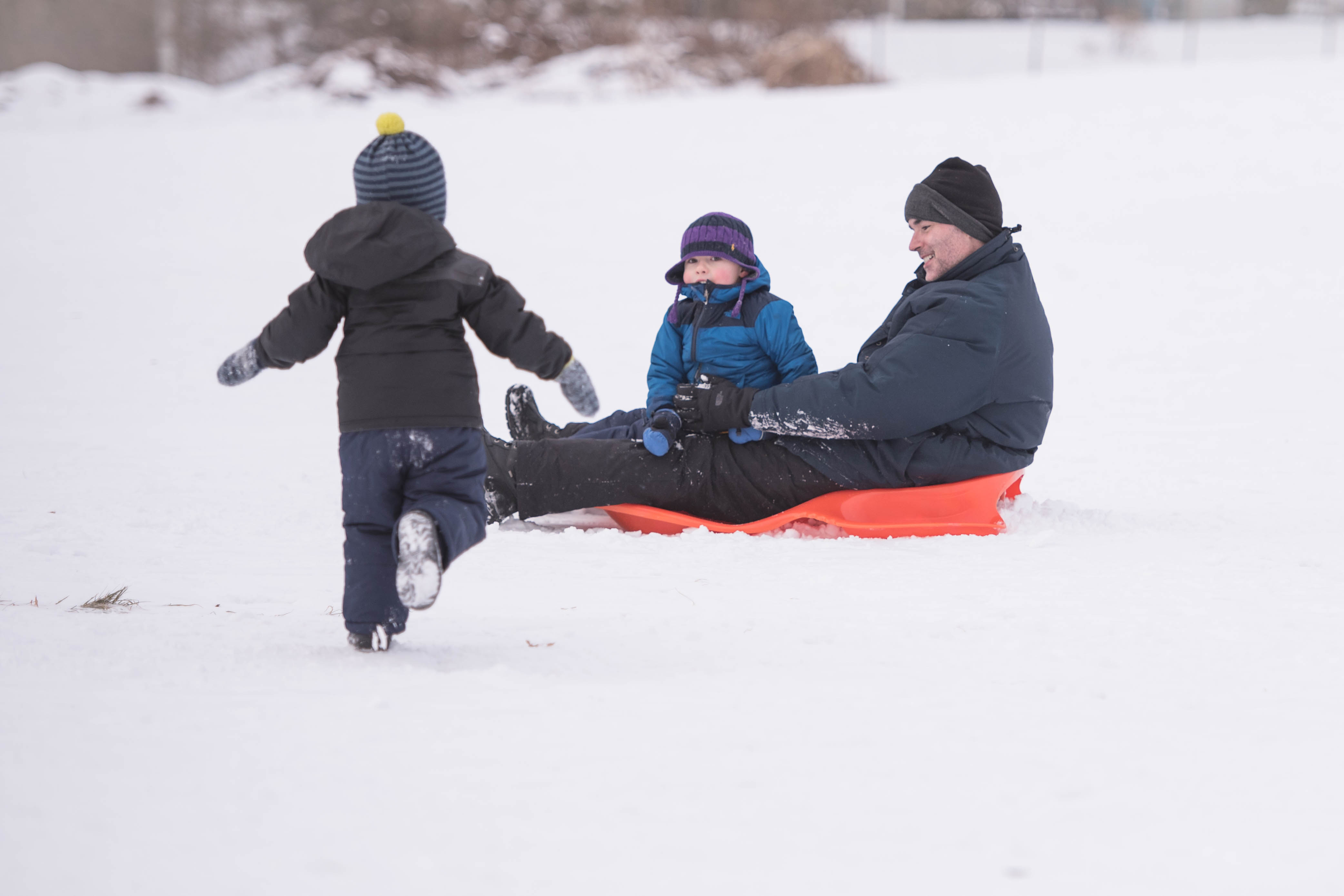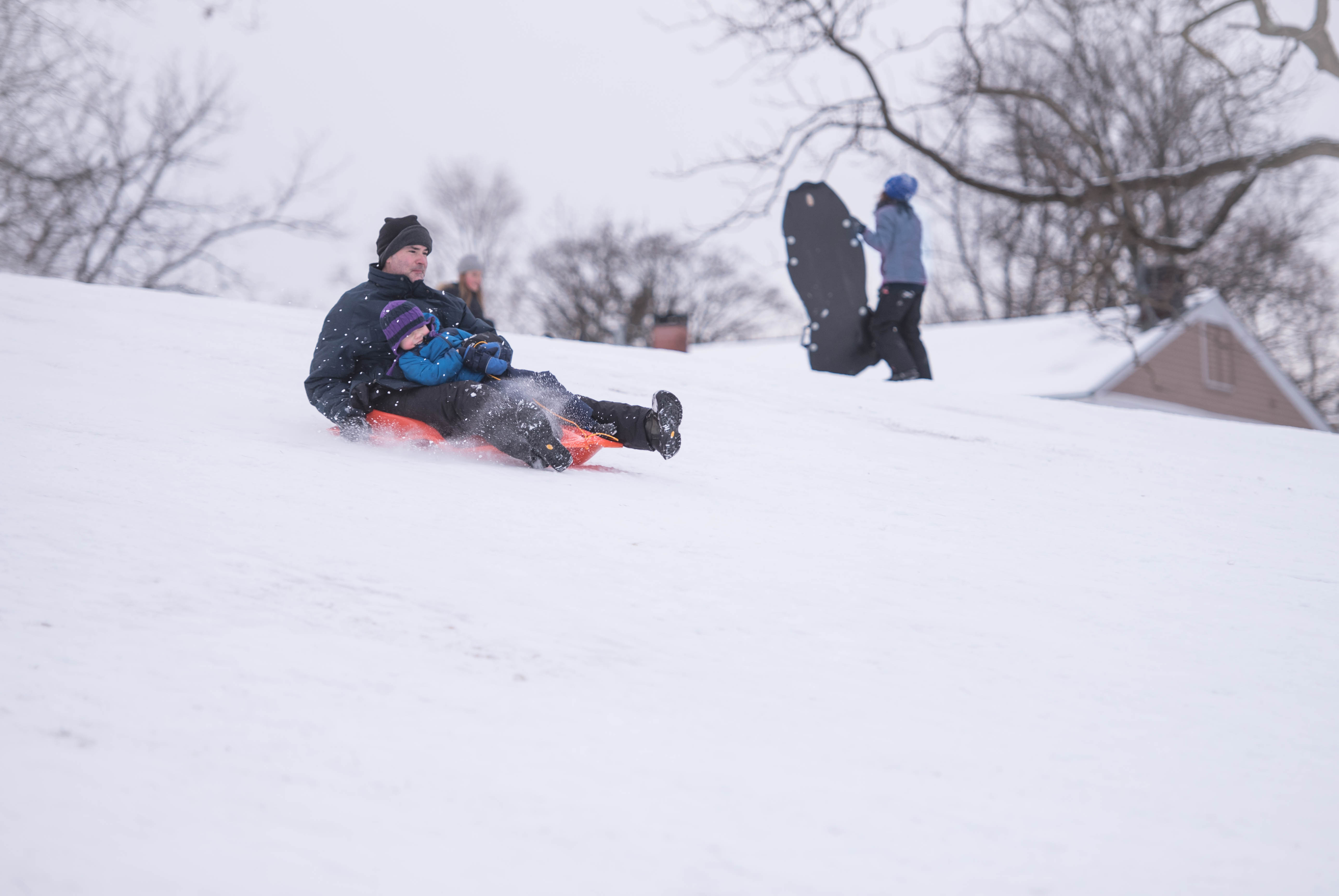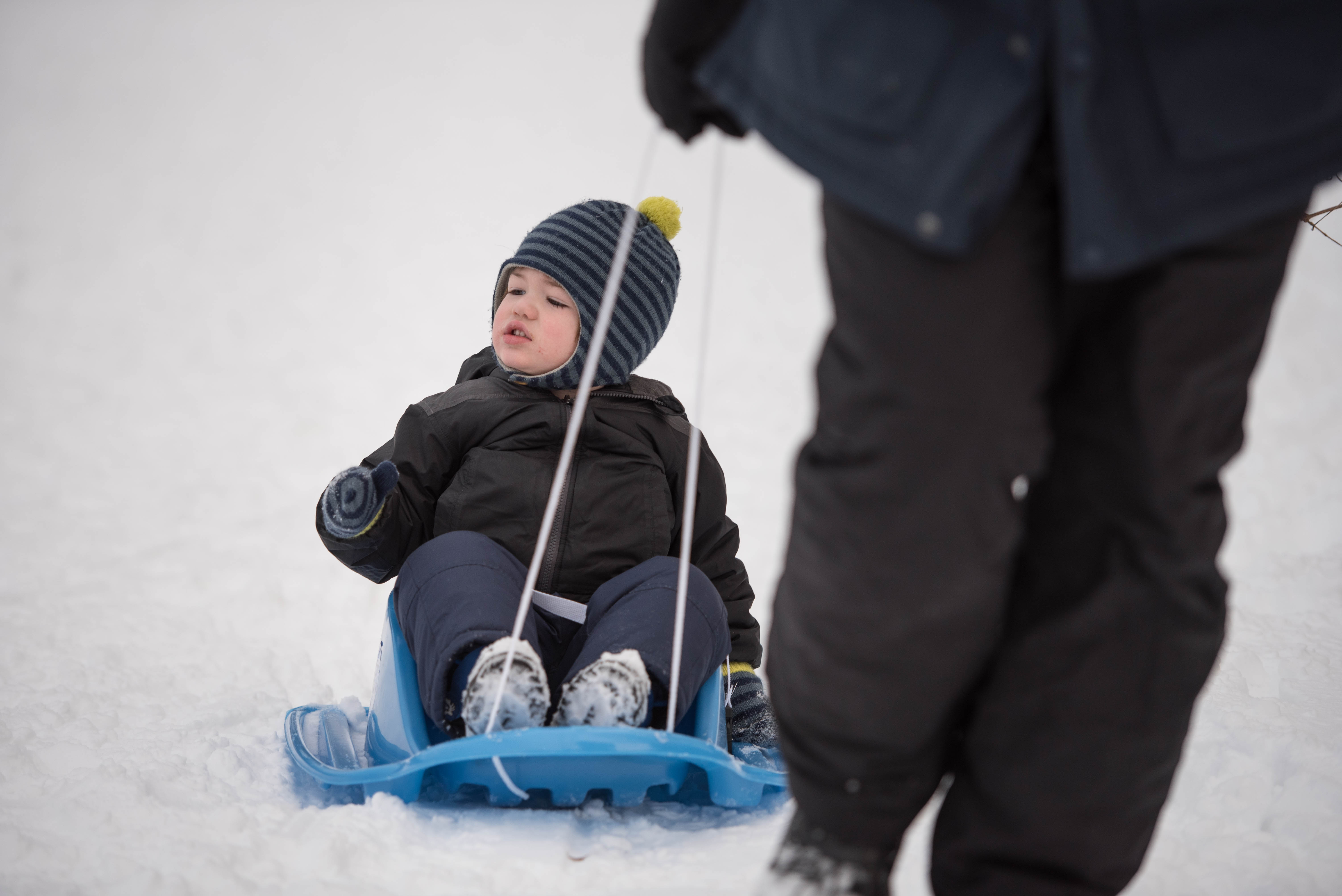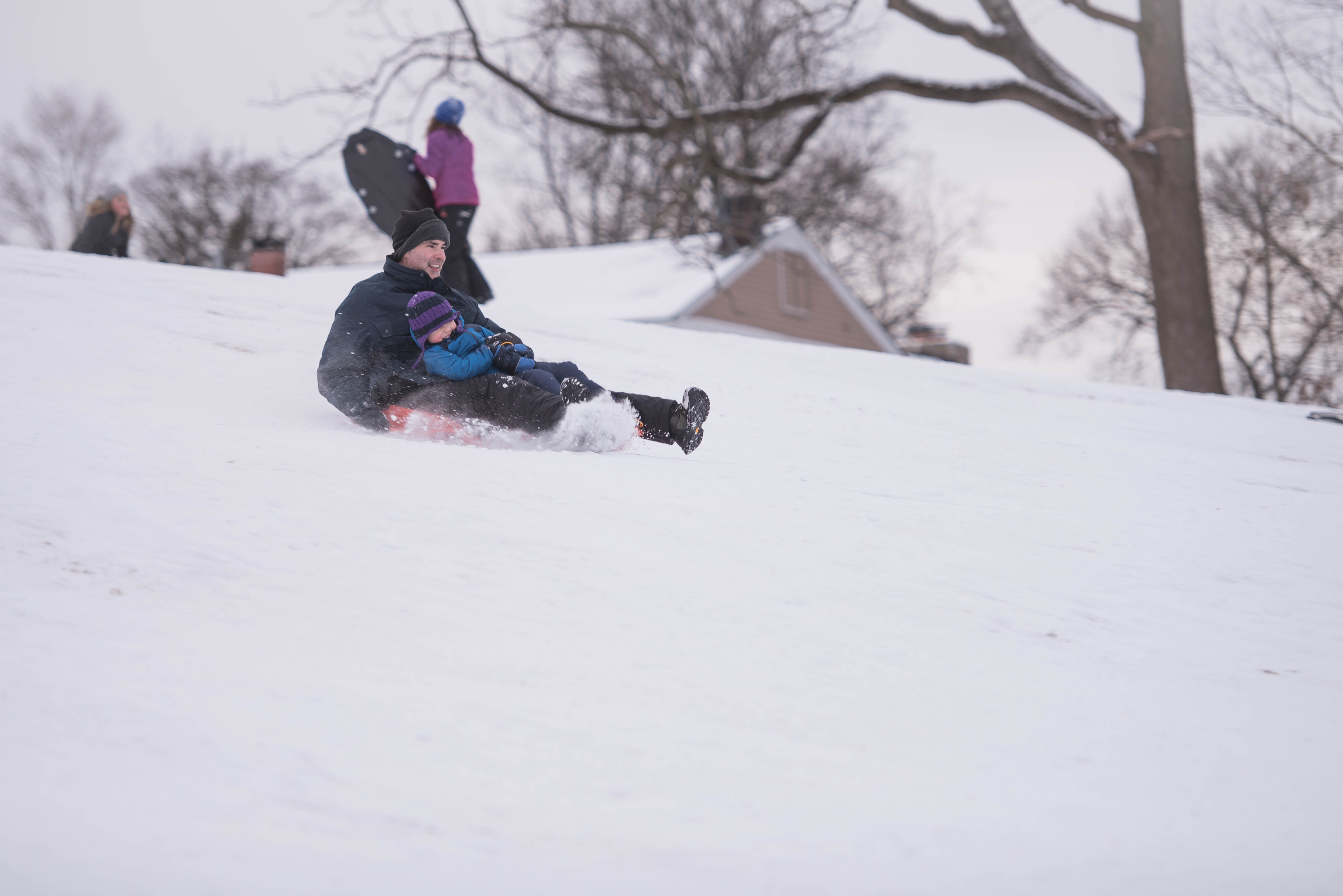 By the end of the afternoon, J was going down a smaller hill all by himself! Little dare devil.